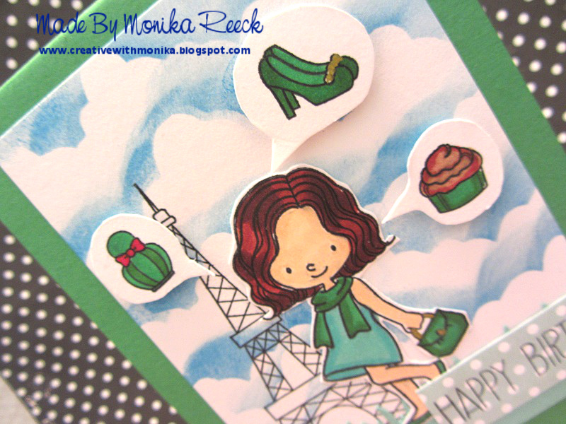 In her imagination she wish this things for her birthday :) she loves green also I choose all things on this card green...the grass the paper base the copic colors all in Green.