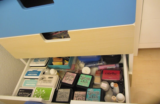 Seventh Drawer. are all my Inks, fill in Inks, Copic Marker (again) and sponge I need for sponging with Distress Ink.