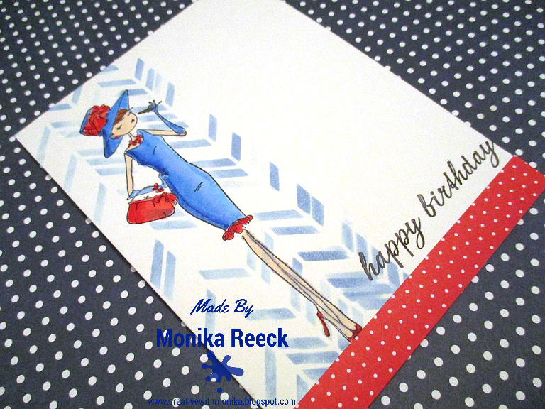 Then I sponged the background with Blue Distress Ink, the sentiment is PTI and I added doted red paper at the bottom for her ground :)