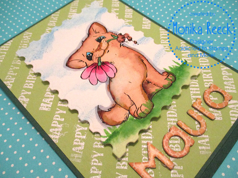I bought this digi Images last night from Cornish Heritage Farms (All Ears Dog Digital Stamp) cause I found this dog is so cute :). I Colored with Akashiya SAI and use cloud stencil for the cloud.
